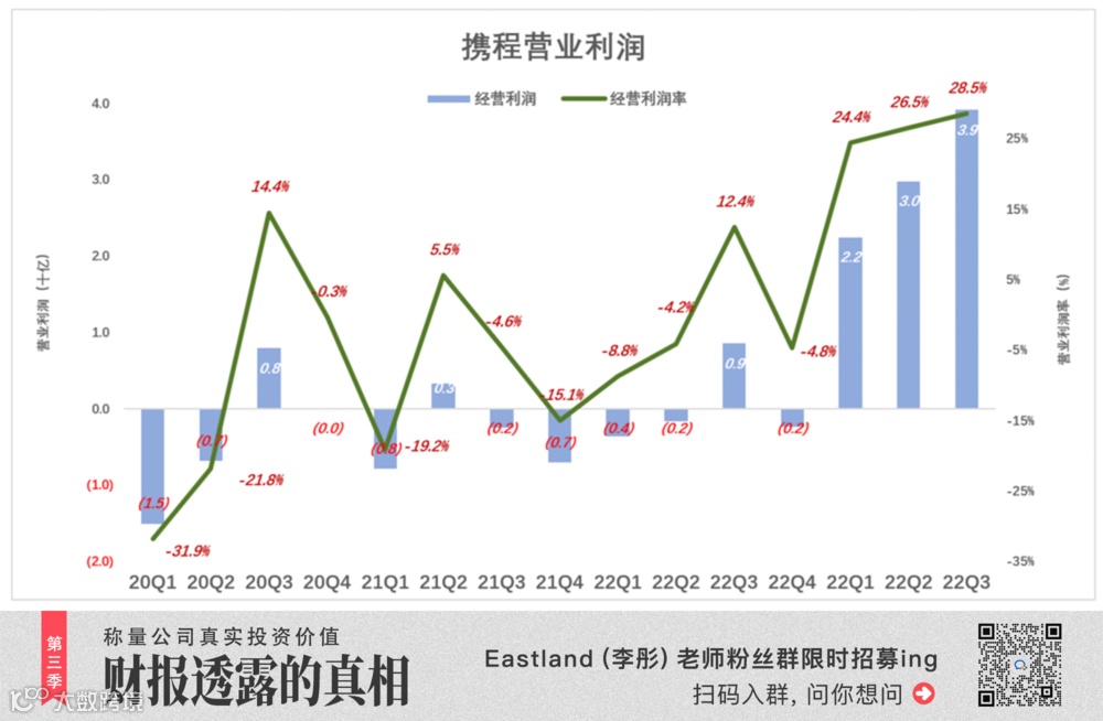 2021年、2022年疫情多次反复,携程有6个季度出现亏损,但亏损率均未超过20%。