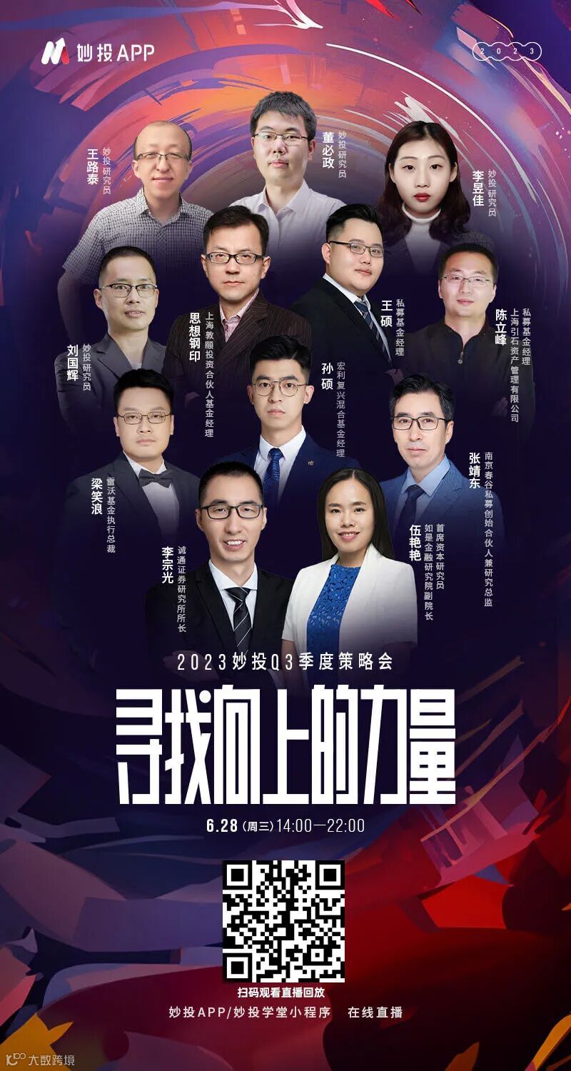 今天妙投Q3季度策略会「寻找向上的力量」正在直播中,会议邀请了10余位行业专家,分享对三季度的市场和投资的看法。本文作者也在策略会上进行了投资策略的主题分享。