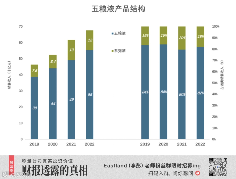 五粮液是个典型:2022年高端产品销量提高19%,中低端产品销量下降38%,但销售收入还涨了12%。