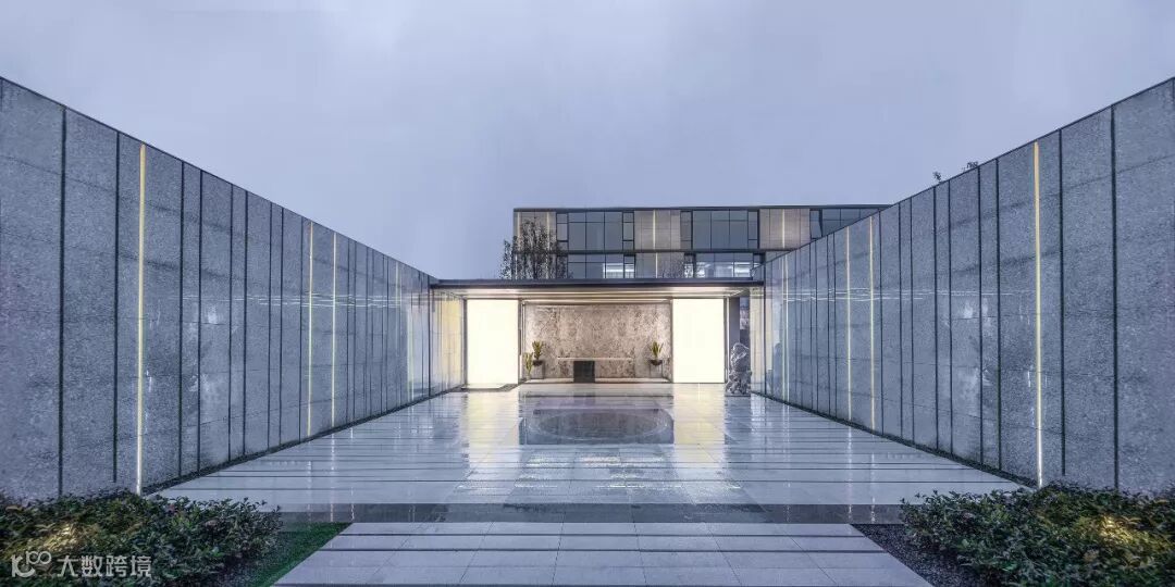 首入示范区,中正的门庭传递着新中式的人居符号,从门厅到接待处,从连廊到景观体验区,一路曲径通幽,层层“情绪过滤”下,颇有一股“结庐在人境,而无车马喧”的意境。充满仪式感的动线,亦是未来院落归家礼序的前奏。