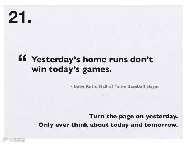 21、即使你今天打出了一个全垒打,也不代表你明天可以。注重今天与明天,而不是昨日的辉煌成就。