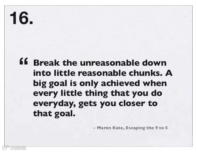 16、再大的目标都不可能一步登天,把大目标划分成许多小目标,然后一个个实现