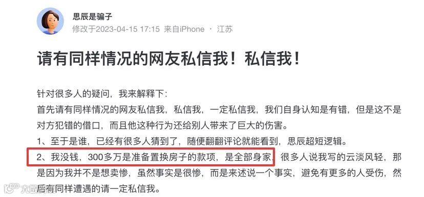 网友在文中提到“300多万是准备置换房子的款项,是全部身家”,其实第一步就错了。