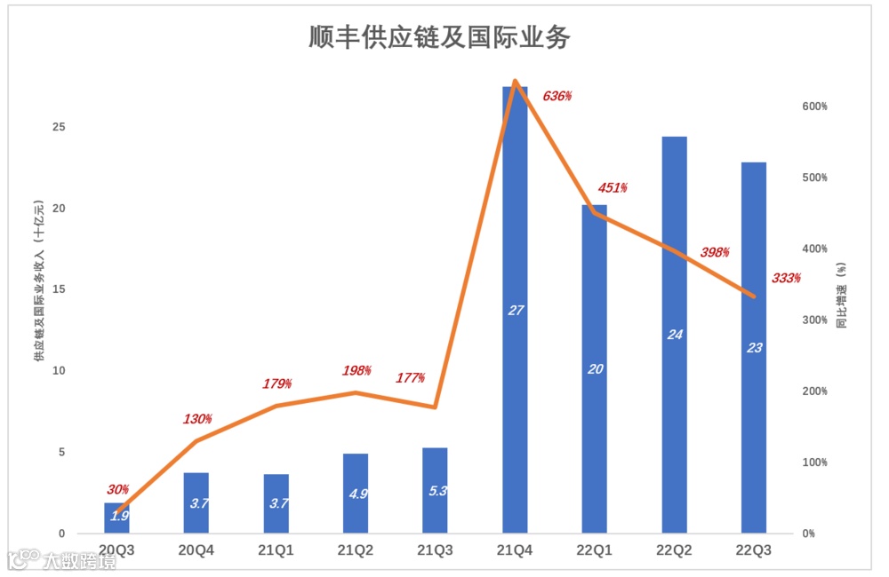 2021年Q3,供应链及国际业务对主营收入增长的贡献率不到11%,2022年Q3达到33%。
