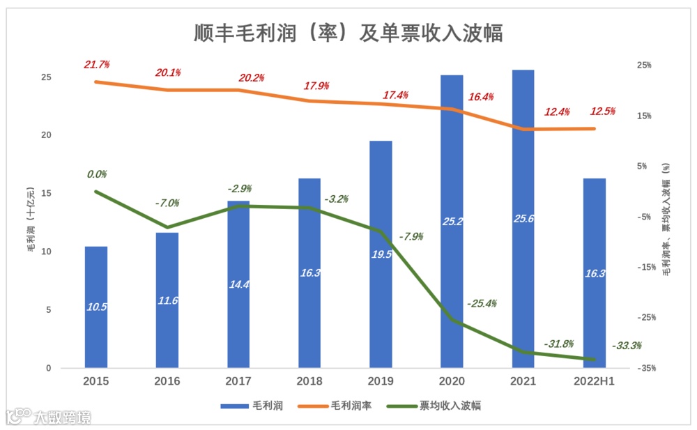 2020年票均收入累计降幅已达25.4%,比2015年毛利润率还高3.7个百分点,顺丰毛利润创纪录地达到252亿,毛利润率16.4%。