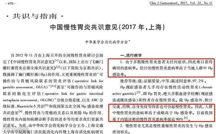 2017年的慢性胃炎共识意见中明确指出,慢性胃炎的患病率接近90%,患病率高于Hp感染率。有句俗语说道,十个人中九个有胃病,也在侧面印证了这一事实。
