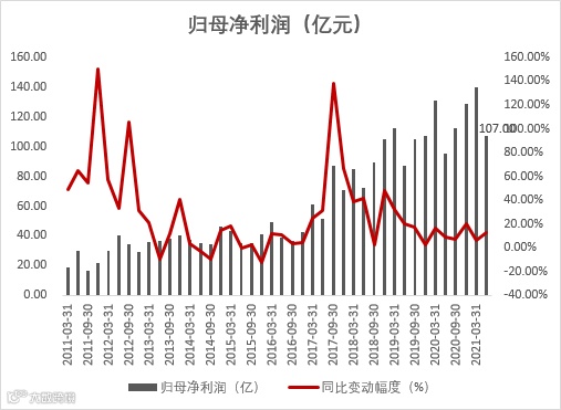 仅就第二季度来看,公司实现总收入226.6亿元,同比增长了11.4%;归母净利润为107亿元,同比上涨了12.5%。
