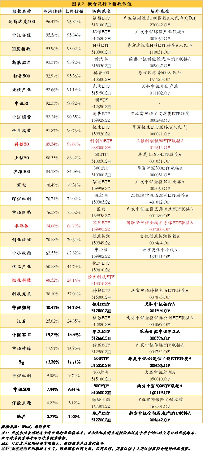 本周主要指数估值变动不大。本周指数估值变动明显的主要是本周跌幅较大的科创板50以及半导体以及本周出现明显反弹的恒生科技指数。