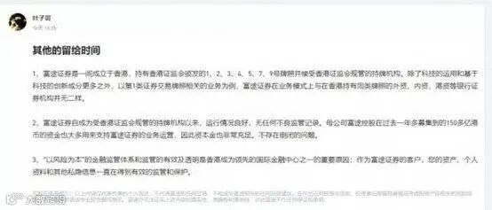 对于牌照的问题,富途创始人李华“花名“叶子哥””发布署名文章《其他的留给时间》回应称,富途证券在业务模式上与在香港持有同类牌照的外资、内资、港资等银行证券机构并无二样。资本金也非常充足,不存在倒闭的问题。