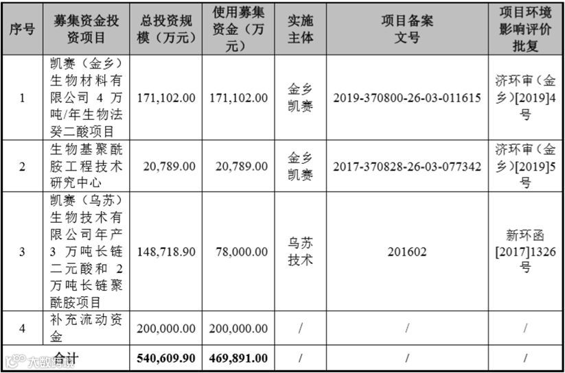 招股书显示,本次凯赛生物计划募集资金全部用于与凯赛生物主营业务相关的投资项目及补充流动资金,项目建成投产后公司产品线及产能均会明显扩张。