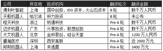 (部分获得融资的康复机器人企业)