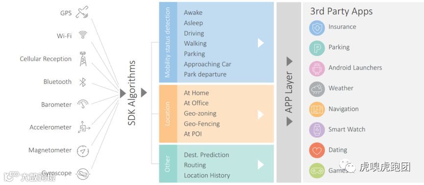 在零售数据层面,以色列公司以研究“人”的行动为重点发力方向。Anagog公司开发了世界上安装最广泛的用户地理信息手机和分析SDK之一,目前在全球有1100万的月活量(不含中国大陆)。其通过将SDK内置在第三方APP中,分析智能手机中已有的多种传感器数据,捕获、分析和了解智能手机的实时移动状态和位置信号,从而识别用户的行为习惯和趋势。在大量SDK得到使用的背景下,Anagog以众包形式建立了全球人群活动的大数据,它甚至可以得知这个人是在家、在睡觉、公园里跑步等实时状态。