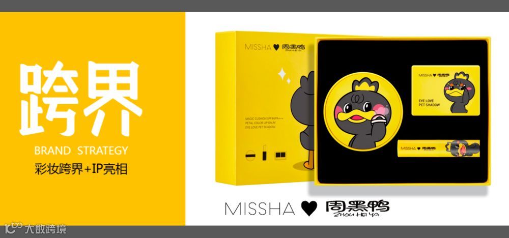 此外在彩妆跨界方面,一个企业来打IP力量是单薄的,需要联手别的品牌。今年3月份的时候,我们与韩国彩妆品牌MISSHA做了跨界,原因是与我们目标人群高度重叠,这样才可能去把这个市场做透。我们合作了有嘿嘿形象的彩妆产品套装。