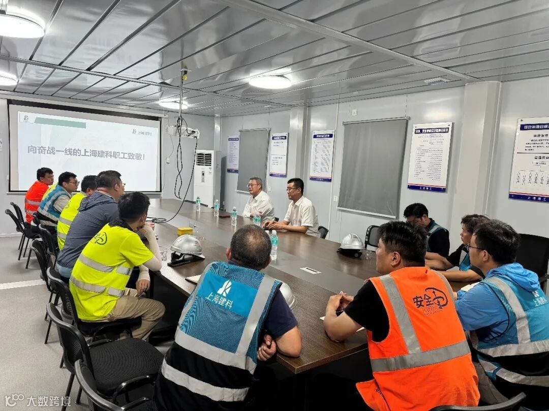 公司党委副书记、总经理郁勇带队赴项目一线调研慰问。在上海国际主题乐园配套设施有限公司三角形项目一线,调研慰问组详细了解工程进展情况、高温期间防暑降温措施落实、作业时间安排及应急保障情况。对项目团队克服高温困难、稳步推进工程建设的拼搏精神给予充分肯定,并叮嘱大家要合理安排作业时间,在确保安全的前提下有序推进工程进度,希望大家以饱满的热情恪守监理职责,严守工程安全底线,全力以赴保障项目建设工作高质量推进。