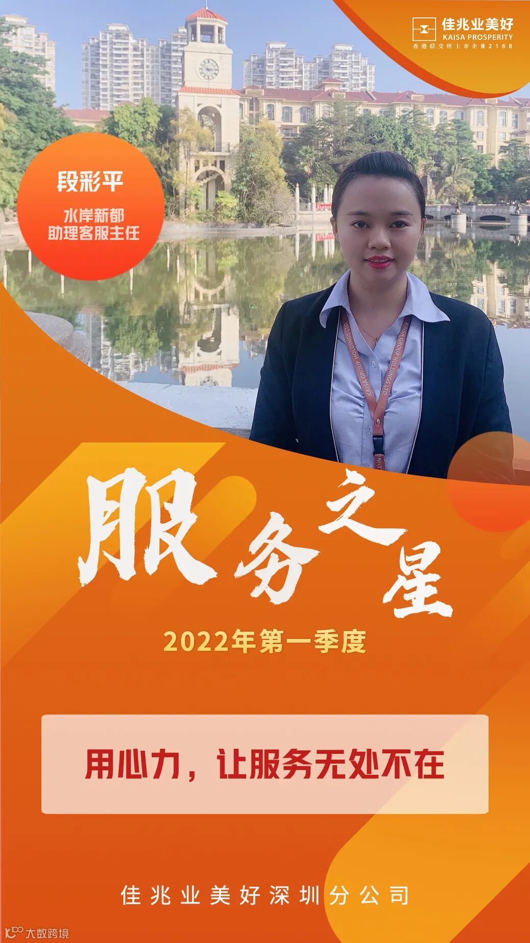 时光往复,但服务的脚步从未停歇,感恩每一位真心付出的“佳”人,在平凡的岗位上永葆服务初心,尽心尽责、兢兢业业,用自己的细心、用心、热心让业户们感受到暖心、安心、舒心。佳兆业美好深圳分公司2022年第一季度服务之星,他们的用心服务值得被看见。