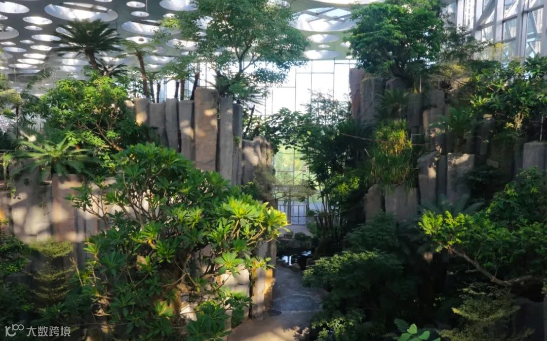 上海温室花园位于上海世博文化公园中心位置,紧邻中心湖,背靠双子山,占地约2.2万平方米,是集观赏游览、休闲娱乐为一体的多功能生态综合体。它由1个游客服务中心和1号馆海市沙洲、2号馆云上森林和3号馆云雾峡谷等三大主题场馆组成。
