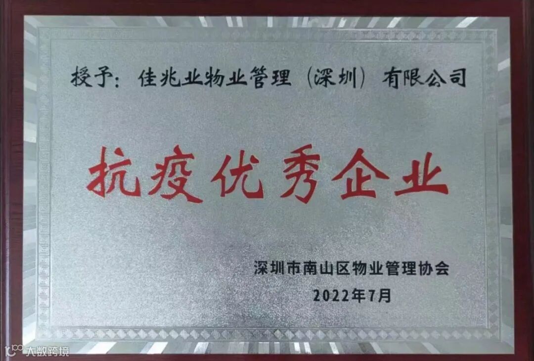 佳兆业美好深圳分公司荣获南山区物业管理协会授予的“抗疫优秀企业”奖牌。