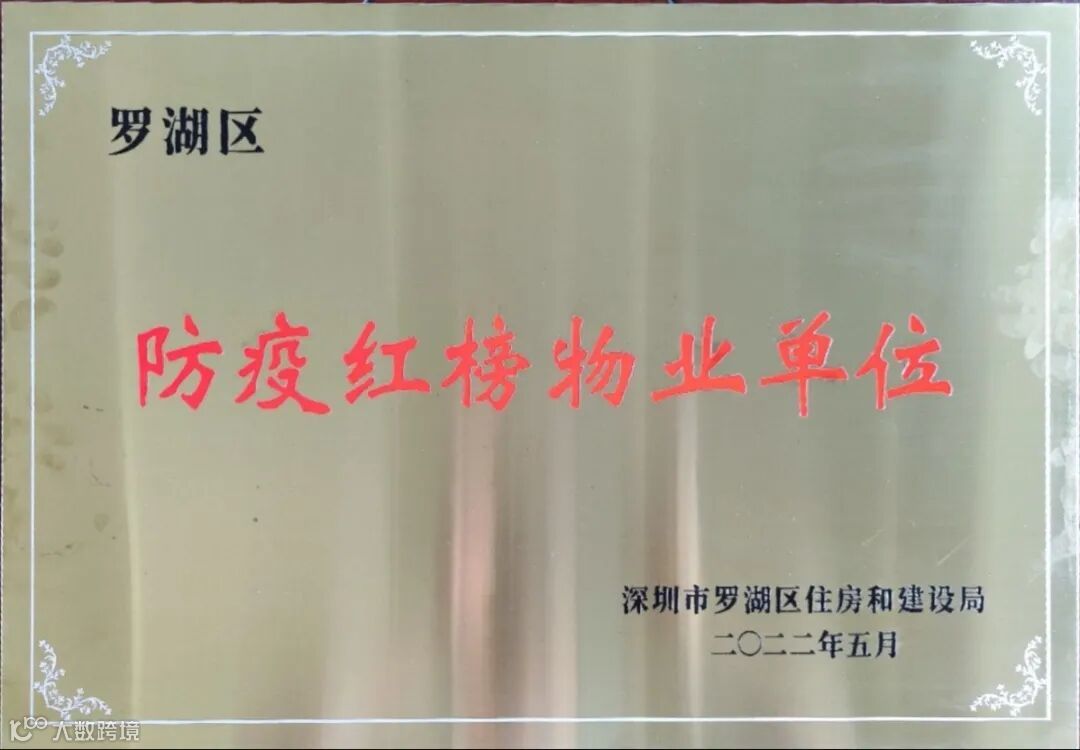 佳兆业美好深圳分公司金翠园项目荣获深圳市罗湖区住房和建设局授予的“防疫红榜物业单位”奖牌。