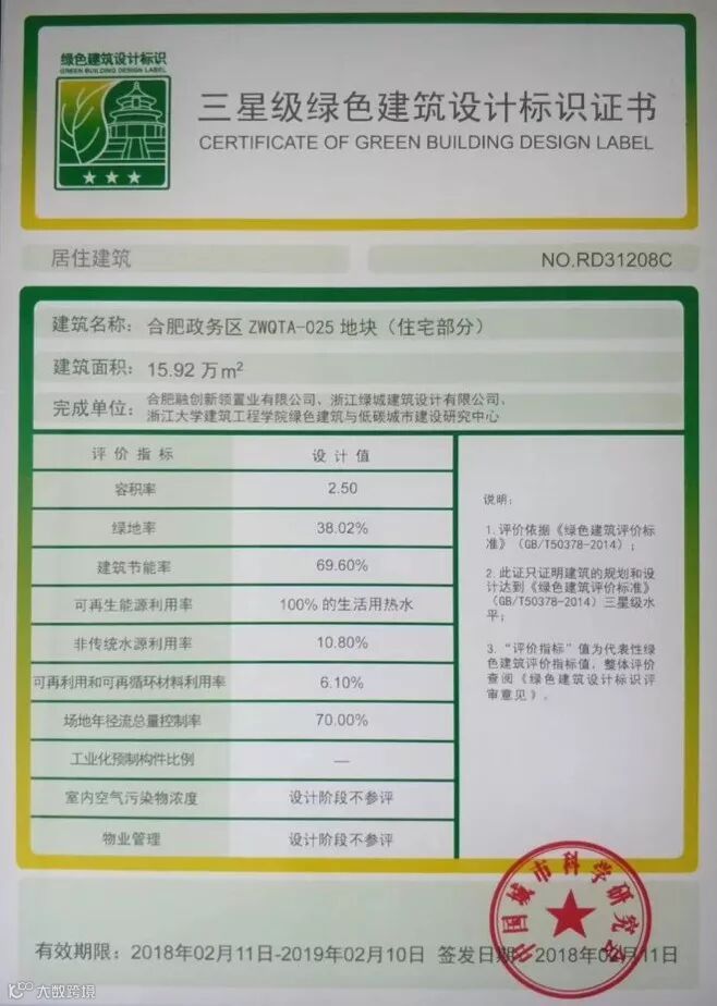 绿色三星建筑设计标识认证书