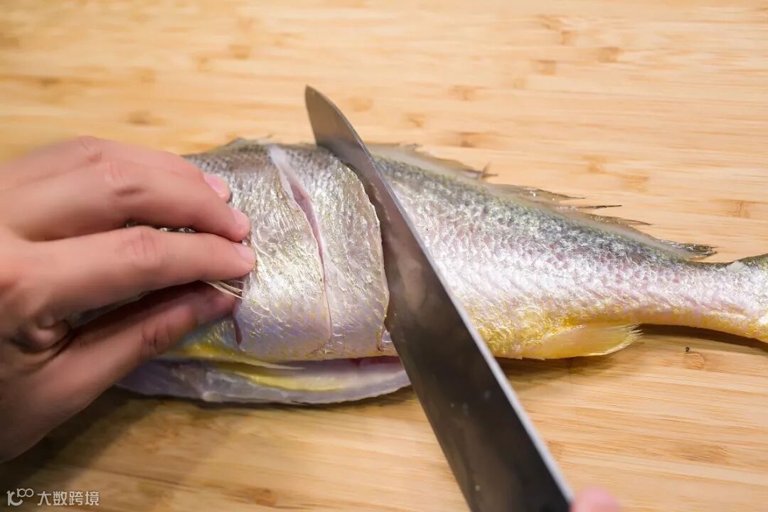 1、大黄鱼洗净改刀。