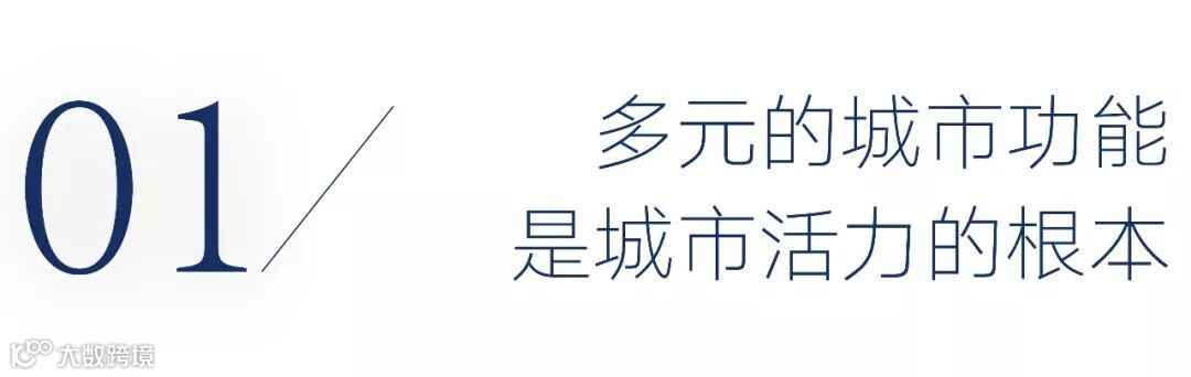 仅有功能场所的集聚不一定能保证城市的活力,还需要城市功能如商业和其它企业的混合,以及良好交通形式的配套,以便形成动态的整体。诸如商业娱乐、医疗保险、教育培训、商务办公等,在一个区域空间内,在结合交通路网有序组合成最理想形态时,也能最大化提供多元的生活体验。
