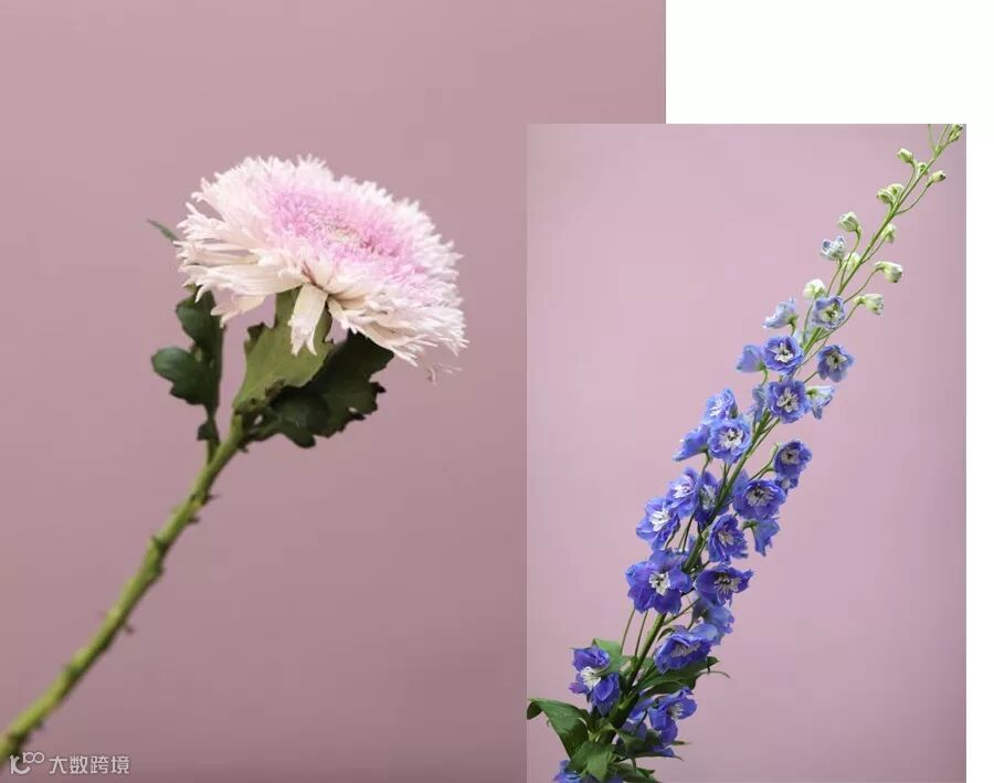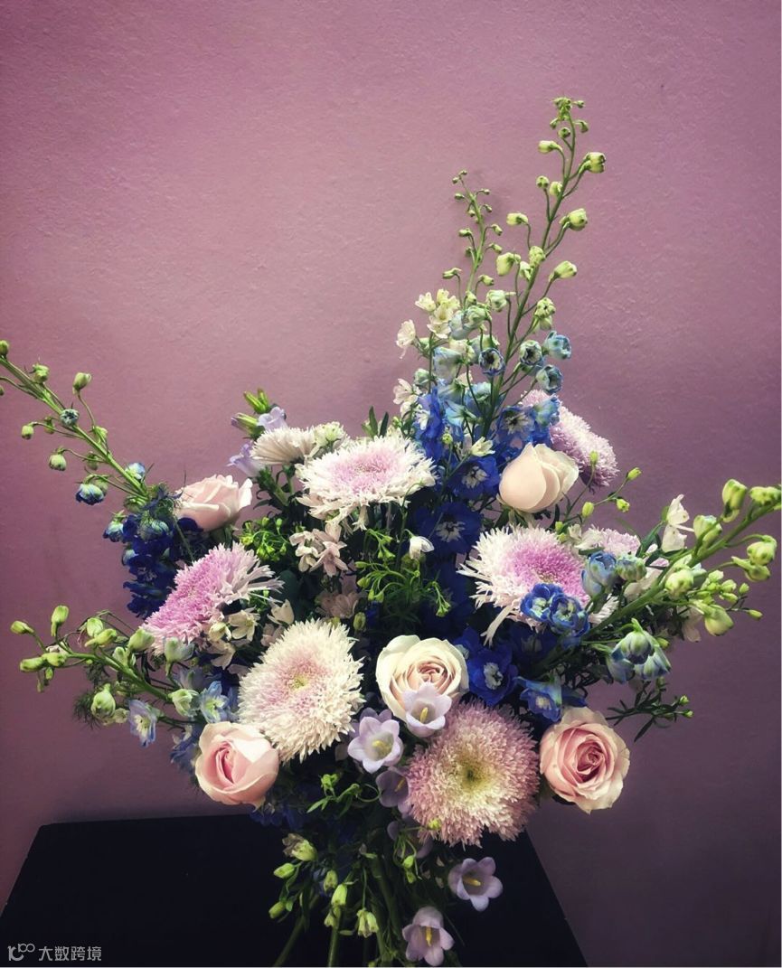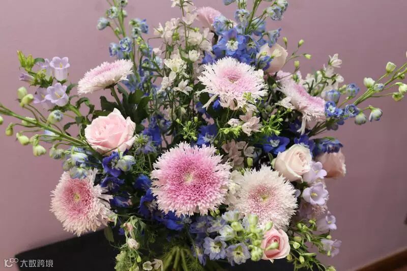 并佐以荷兰进口的淡蓝色飞燕草,