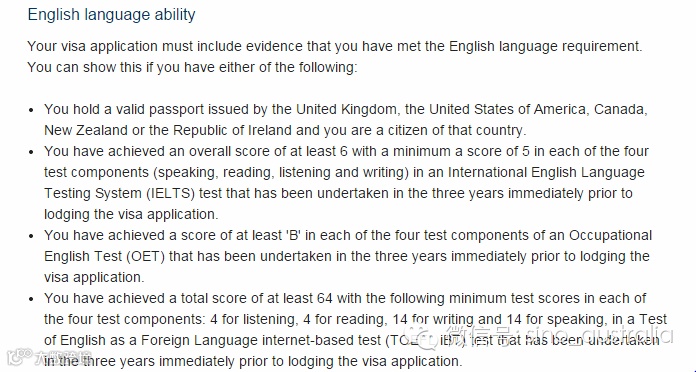 · 学生朋友们毕业后要申请工作签证,不管是传统的485签证还是新出的两年PSW签证,英语要求都不再是雅思4个6分,只要总分6分, 单科不低于5的就达到英语要求了!
