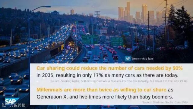 6、汽车共享可以在2035年将所需车辆的数量减少90%。