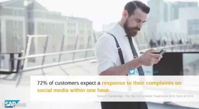 56.72%的客户希望企业在一小时内对他们社交媒体上的投诉作出回应;