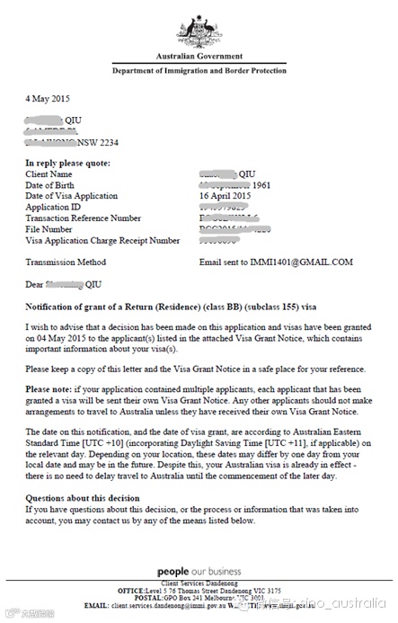 仇先生之前持永久居民身份,但在过去的5年里在澳洲累计居住不足2年,故他在永久居民身份到期的最后一天回澳洲,申请延签。仇先生除了是一家澳洲公司的股东之一以外,他在澳洲一无所有,更不存在其他联系。移民局曾经质疑仇先生与澳洲是否存在不可割舍的联系。就这点,中澳国际积极与移民局电话沟通并集合材料,才得以说服了仇先生与澳洲存在商业联系,他为澳洲的商业做出一定的贡献。顾仇先生得以争取宝贵的1年RRV签证,以便在未来的一年里继续为公司发展往来中澳。