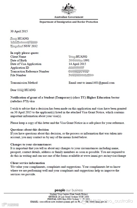 学生小黄申请悉尼大学来读硕士课程。小黄在中澳国际的指导下花了15天就顺利获得高等教育学生签证(573类别)。