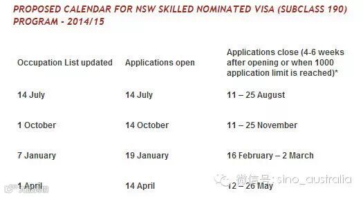 澳洲财政年度刚刚结束,我们又迎来了2014-2015年度铁定要继续的州担保又再复活!此次名额将于7月14日凌晨开放,每次开放时间是4-6周,或收到1000个申请即截止,全年开放4轮。