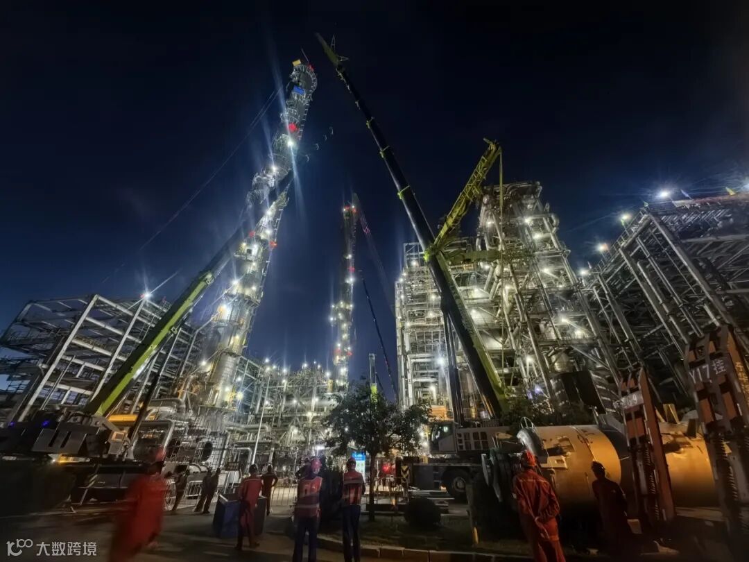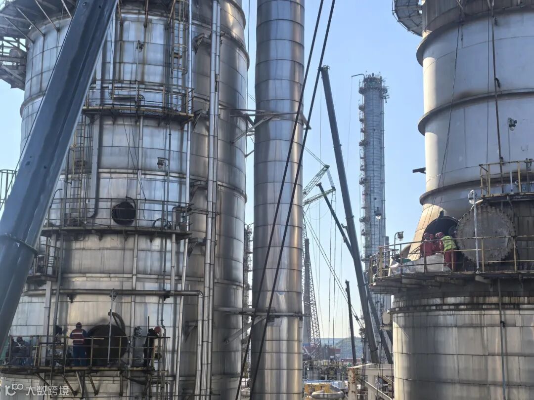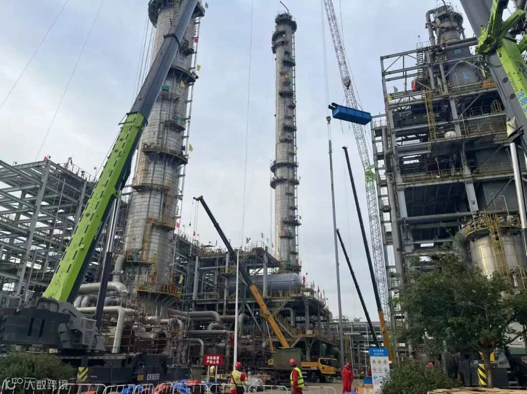 急冷单元的急冷油塔C-1210与急冷水塔C-1220,直径10米,高度分别为59.55米和51.85米,两塔共40层塔盘、8万余个螺栓。由于吊车站位区域有限,急冷单元塔盘更换吊装作业面临空间狭小、精度要求高等难题,乙烯装置同厂机关部室、参检单位通力协作,多次优化吊装方案、开展现场推演,确保了急冷单元8台吊车安全高效协同作业,为后续密集型吊装作业积累了宝贵经验。