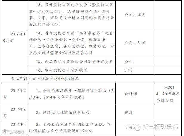 1、2016年4月中介机构进场尽职调查,提出企业规范方案。