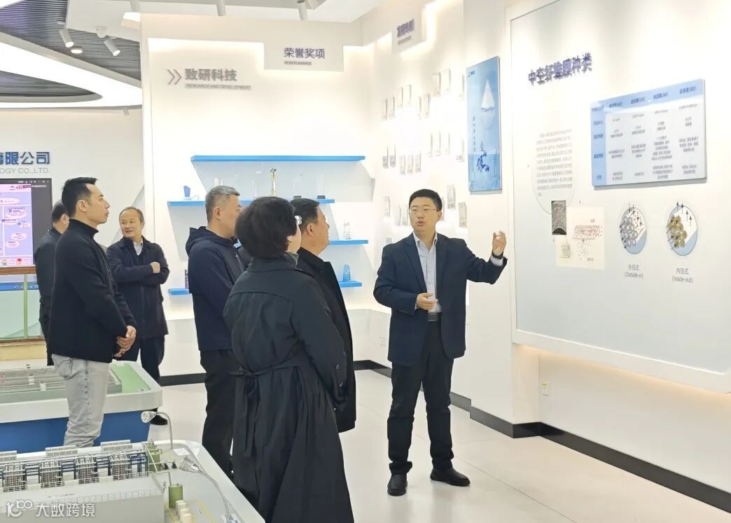 在公司展厅,蒋鹏详细介绍了津膜科技的发展历程、核心产品及行业布局,并重点汇报公司数字化转型实践成果。近年来,津膜科技大力推进数字化升级,成效显著。在管理数字化方面,通过搭建阿米巴独立核算体系,实现员工浮动绩效、健康状况的在线化管理,大幅提升管理效率与精准度。 在生产数字化方面,升级 ERP 系统核心模块,定制开发 MES 制造执行系统与效率拉动电子看板,优化生产流程,推动生产运营高效有序。