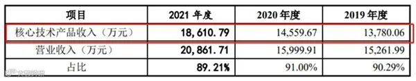 报告期内,公司核心技术应用的主要产品收入金额分别为13,780.06万元、14,559.67万元和18,610.79万元,占营业收入的比例分别为90.29%、91.00%和89.21%。