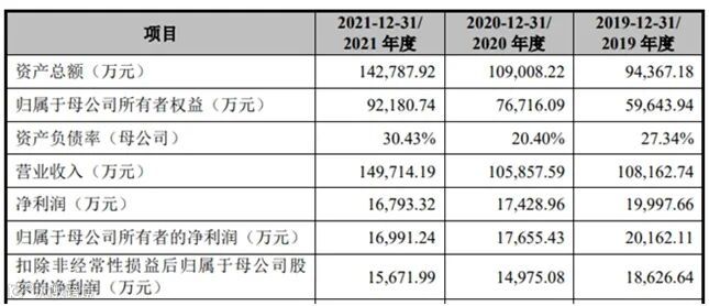 2019年-2021年民爆光电营业收入总体呈增长趋势,营收从2019年的10.81亿元增至2021年的14.97亿元,三年分别实现净利润约1.99亿元、1.74亿元、1.68亿元,显示盈利情况稳健,总资产亦从2019年的9.44亿元增长至2021年的14.27亿元。