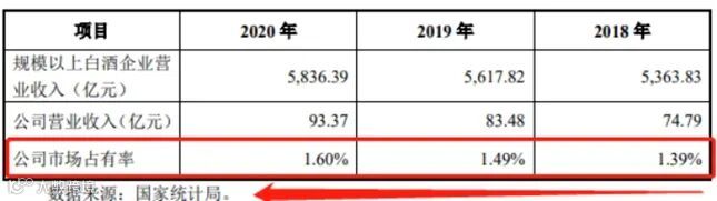 而从2018年-2020年的市场整体来看,郎酒集团已分别实现营业收入74.79亿元、83.48亿元、93.37亿元,持续增长的经营业绩,占据市场的一席之位。根据国家统计局数据,2020年规模以上白酒企业销售收入合计5,836.39亿元,以此测算,公司2020年市场占有率为1.60%,较2018-2019年的市场份额,有着明显的上升态势。