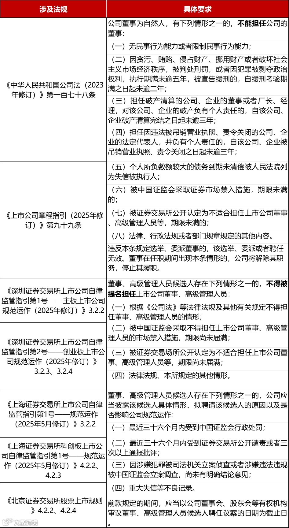 多份法规明确了职工董事任职的禁止性情形,具体如下表: