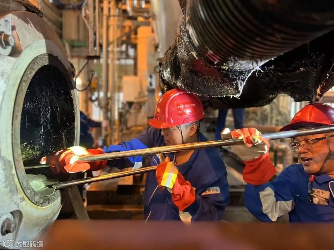 烯烃厂乙烯联合车间乙烯装置扩能改造的硬仗里,青年突击队成了最亮的光。队员们的平均年龄29岁,来自装置的各个岗位,他们熟悉裂解炉、压缩机、精馏塔等核心设备运维,兼具理论和实战经验。和往年相比,本次检修的强度是前所未有的:7倍倒空置换量、6台炉同步退炉,单炉9个导淋、32个排水阀、64组火嘴与蒸汽阀,全要在58米高空处置。他们扛着30条胶带冲上七层平台,狭小空间里匍匐着拧阀门,扳手每寸挪动都浸着汗。五天五夜的坚守——工装能拧出水,油污糊住眉眼,笑声却在钢架间撞得清脆。这群年轻人不仅为工序抢出黄金时间,更把汗水酿成了勋章,让青春在高温里淬炼出最滚烫的模样。