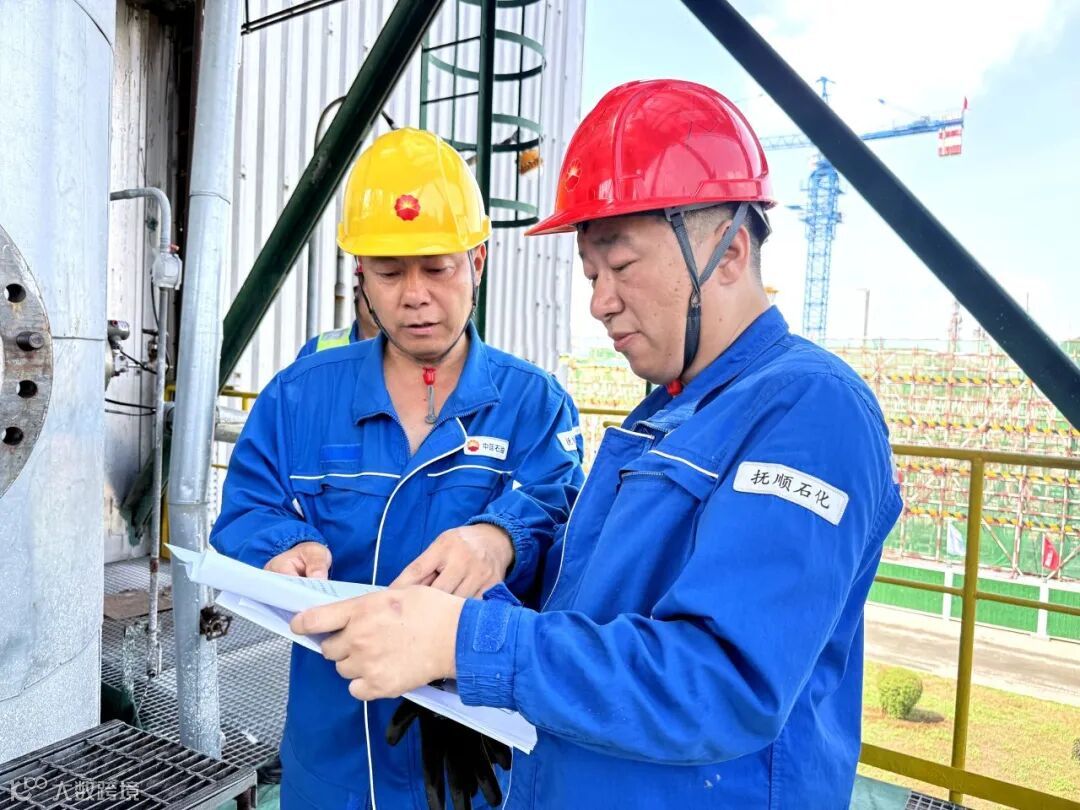 面对复杂的工艺流程,他们没有丝毫退缩。连续两天吃住在厂,常常奋战到凌晨。在操作室里,他们紧盯屏幕,监盘指挥,不放过任何一个细微的数据变化;在塔区、框架间,他们爬上爬下,实地查看进度,确保每一个环节都万无一失。在蓝色工作服后背,白色的汗水“地图”是他们辛勤付出的见证。