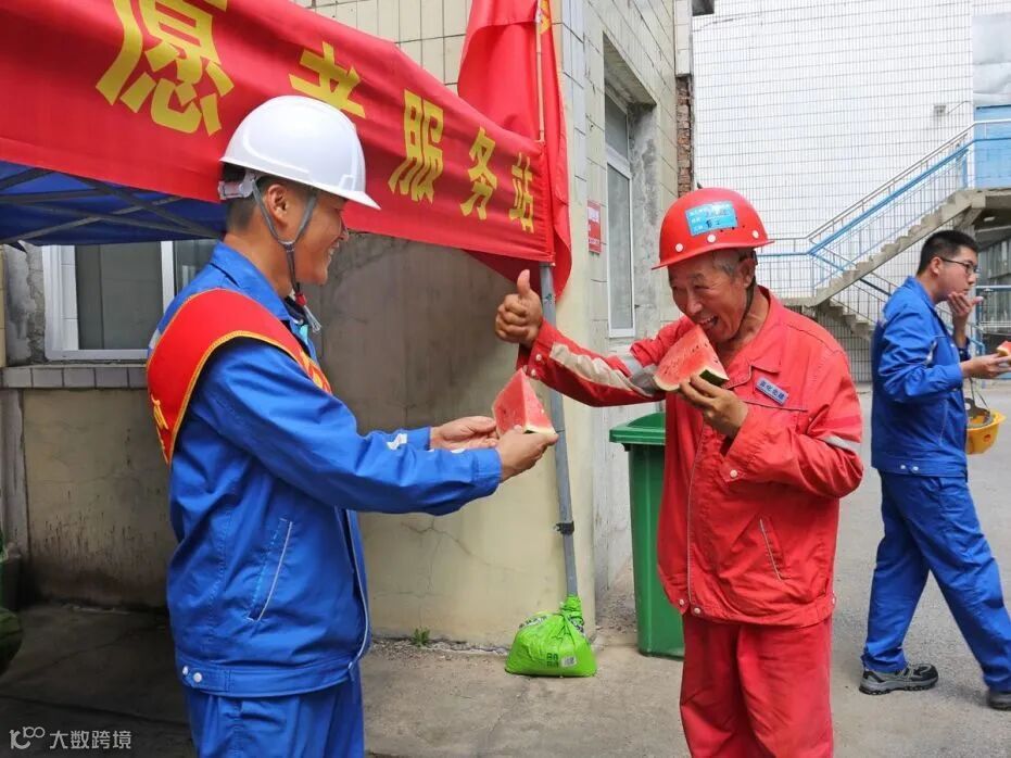合洗厂油品储运联合车间检修现场,员工们正在全身心得投入到各项检修任务,挥洒着汗水。厂工会带着满满的关怀来到了检修现场,开展了一场温馨的“送清凉”活动,为检修一线的员工们送来了清甜的西瓜。志愿服务队的员工们脸上洋溢着热情的笑容,他们将一个个新鲜的西瓜搬运到现场,动作迅速而有序。西瓜切开摆放在盘子里,志愿者服务人员亲切的招呼着“大家辛苦了,快来吃块西瓜解解暑”。员工们从志愿者的手上接过西瓜,脸上露出了欣慰的笑容。在检修现场,西瓜不仅是一份清凉的食物,更是志愿服务队对员工们辛勤付出的关爱。它让员工在紧张忙碌的检修工作中感受到了厂的关怀,也进一步激发了大家的工作热情,让大家更好的状态投入到检修工作中。