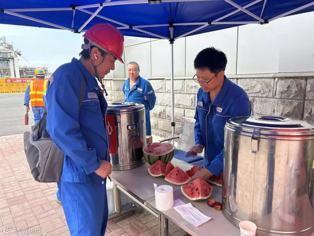 一口清甜饮品下肚,不仅驱散了高温带来的燥热,更让一线人员感受到贴心关怀,有效提振了团队干劲,为公司大检修高效推进筑牢“后勤保障线”。
