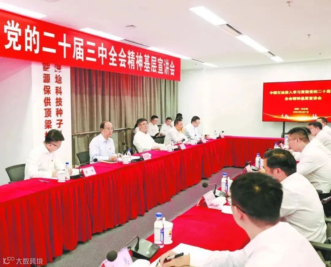 集团公司党组书记、董事长戴厚良为塔里木油田西气东输第一站党支部、深地塔科1井联合党支部、基础研究部党支部作党的二十届三中全会精神宣讲