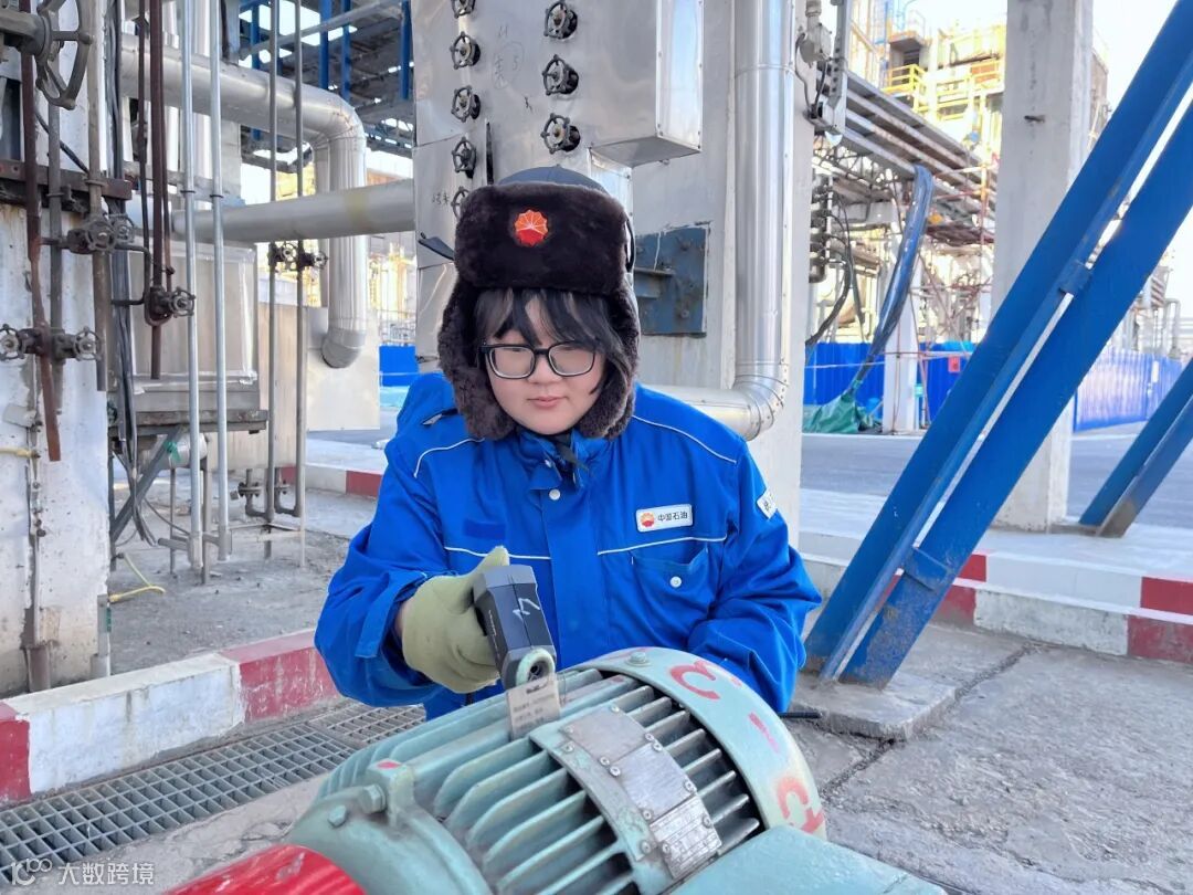 此时,室外天气寒冷,刺骨的寒风“拍打”着她的脸。她快步走到机泵旁,仔细观察着设备的运转状态,用手中的测温枪反复测量着设备温度,准确记录下相关数据,检查循环水管线等易冻凝点位,防止其因低温而发生冻凝。巡检一圈下来,她的脸冻得通红,眼镜上早已布满了“白霜”。