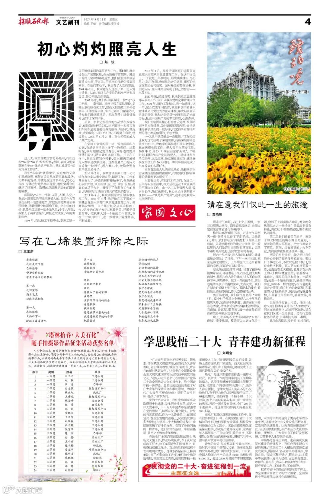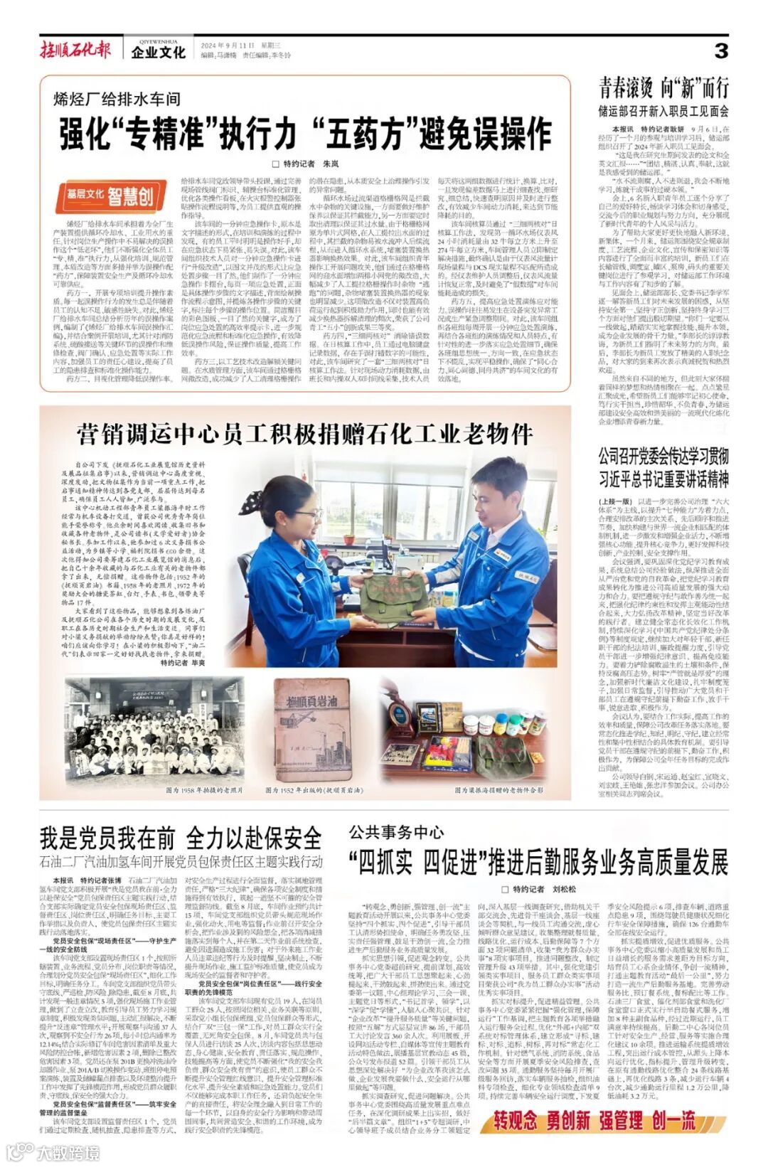 《抚顺石化报》2024年9月11日 抚顺石化人