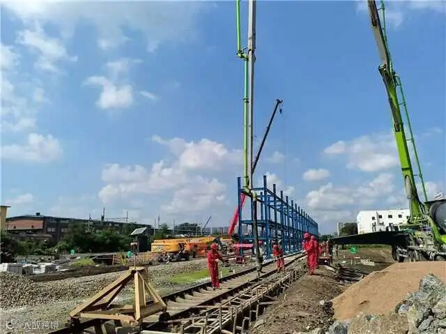 该工程项目6月17日正式在铁路西材线路施工,拆除原5条铁道线路,新建4条线路,其中新1、2道线路为整体道床,整体道床施工比原计划提前一天交予吉林化建施工单位。