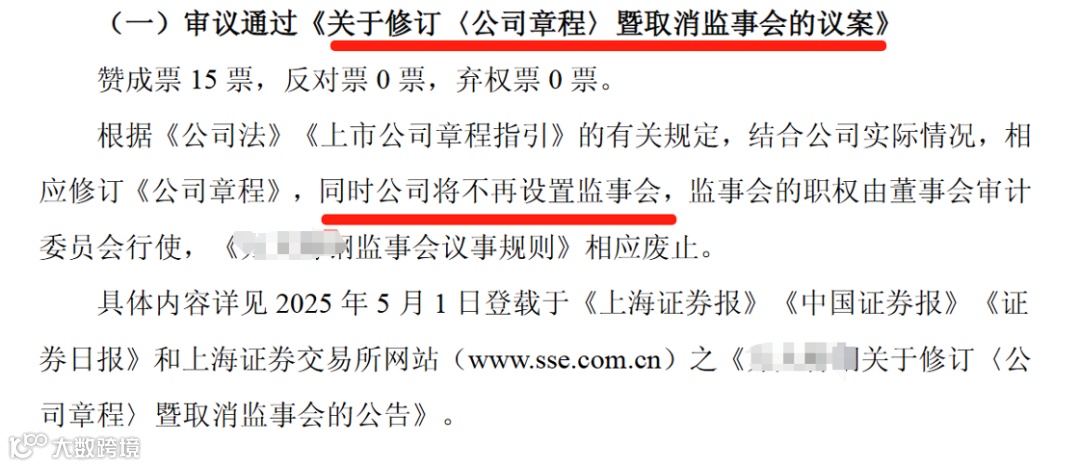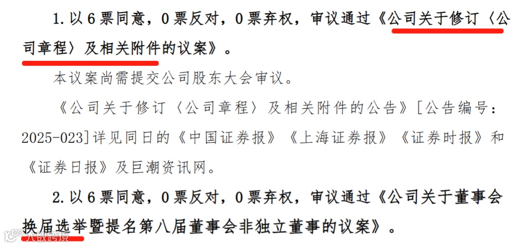 也有的公司不提及取消监事会,只是审议《修订章程及附件的议案》以及董事会换届选举的议案。