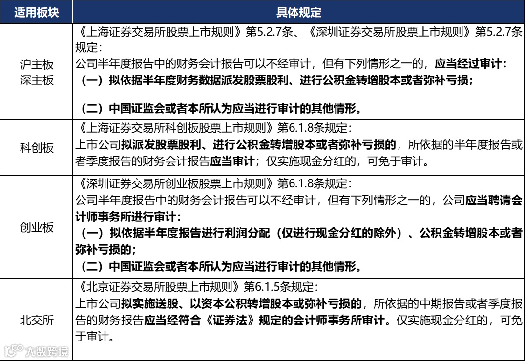上市公司半年度仅实施现金分红的,半年度的财务会计报告可以不经审计。但出现下列情形时,上市公司应当聘请会计师事务所进行审计: