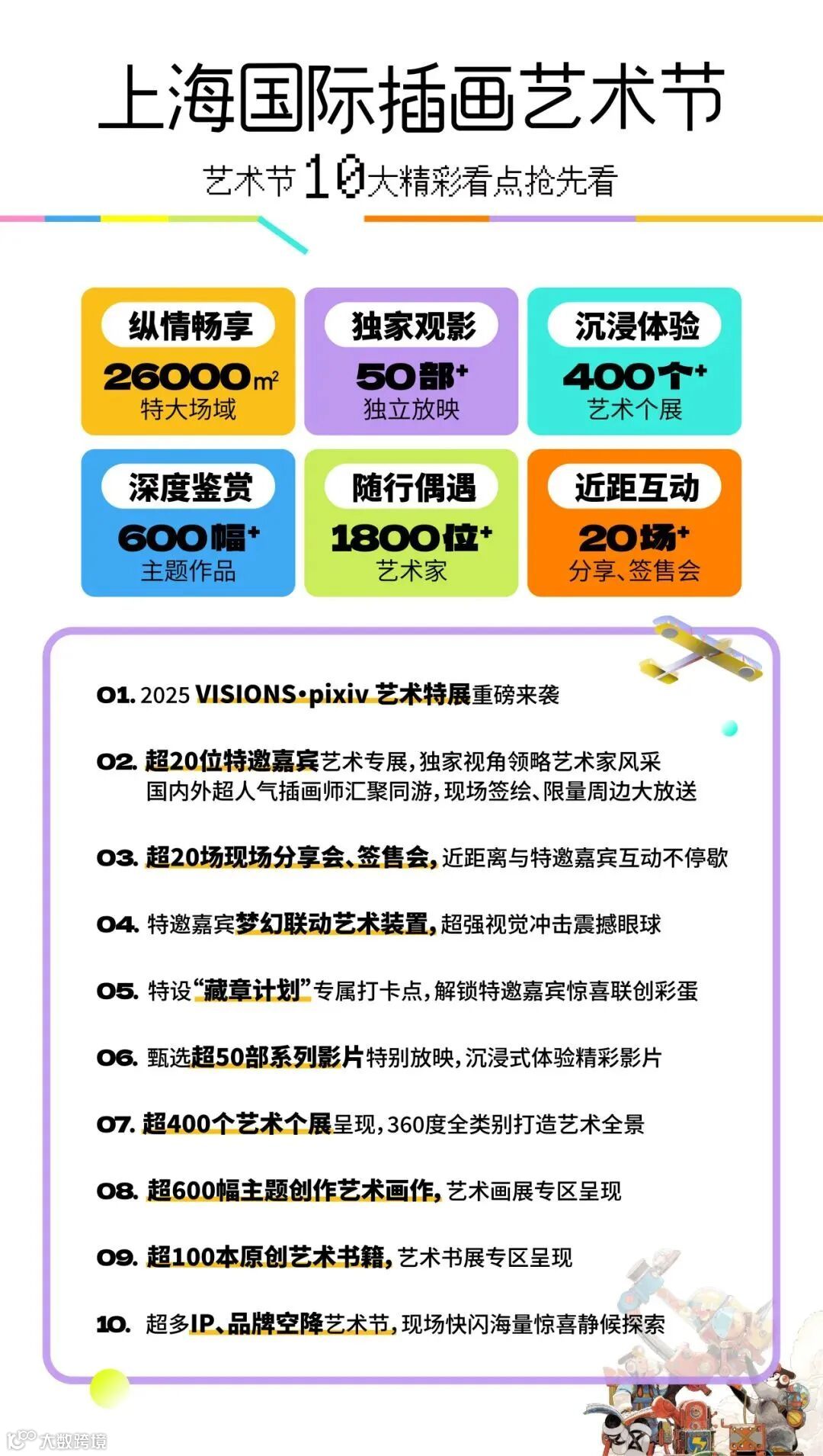九大板块、四天海量精彩活动轮番上阵,观展者将纵情畅享 26000平方米 特大场域、随行互动 1800位+ 艺术家、深度鉴赏 1000幅+ 主题作品、沉浸体验 400个+ 艺术个展、独家观影 50部+ 独立放映 20场+ 分享签售会 25个+ 特邀嘉宾个展……空前规模打造长三角大型、多元、跨界、共创的超级艺术节。